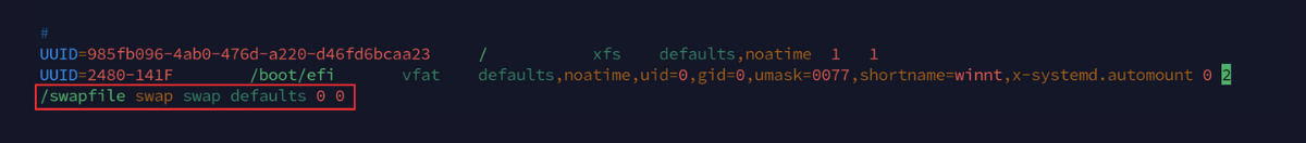 2-6. /etc/fstab 파일 편집을 통한 스왑 파일 활성화